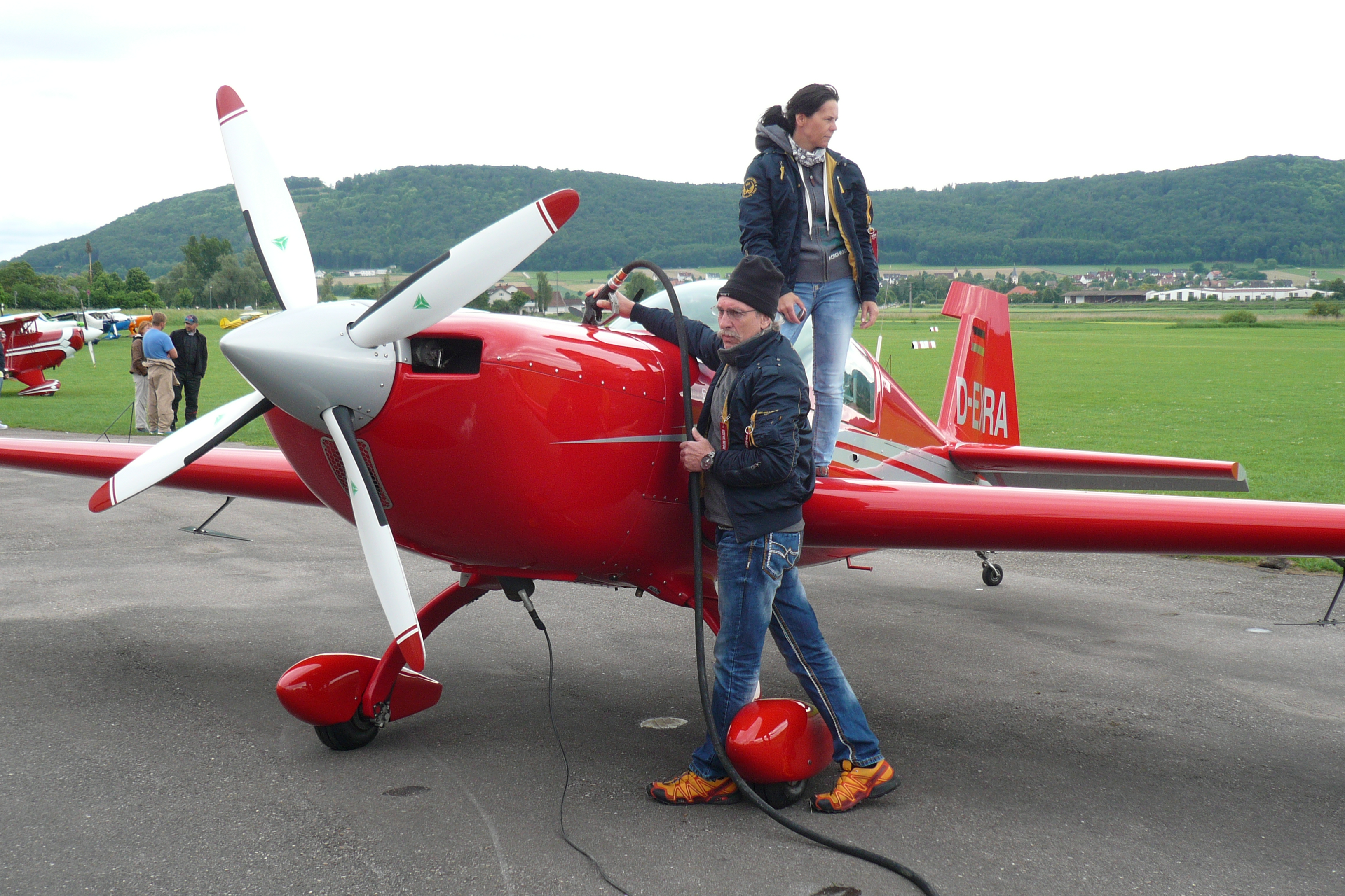 Gestern war das Fliegen erst ab 17.00 Uhr möglich. Heute wurde es gar 18.00 Uh, bis der erste Luftakrobat zu seinem Wertungsflug starten konnte. Zuvor hing entweder die Wolkendecke viel zu niedrig oder es regnete.